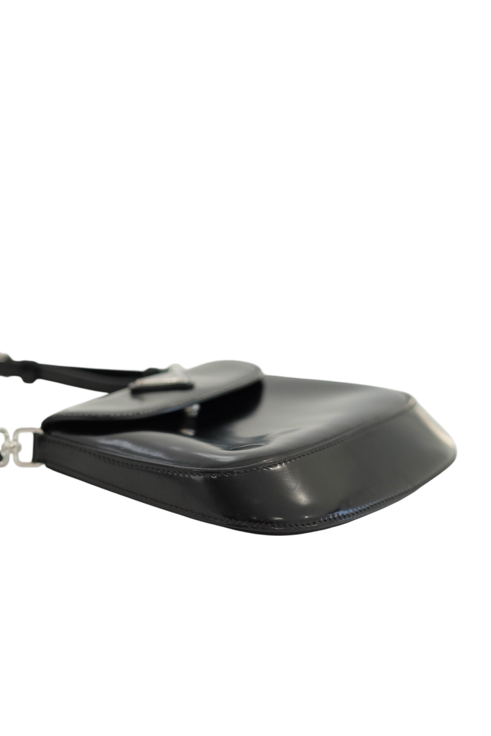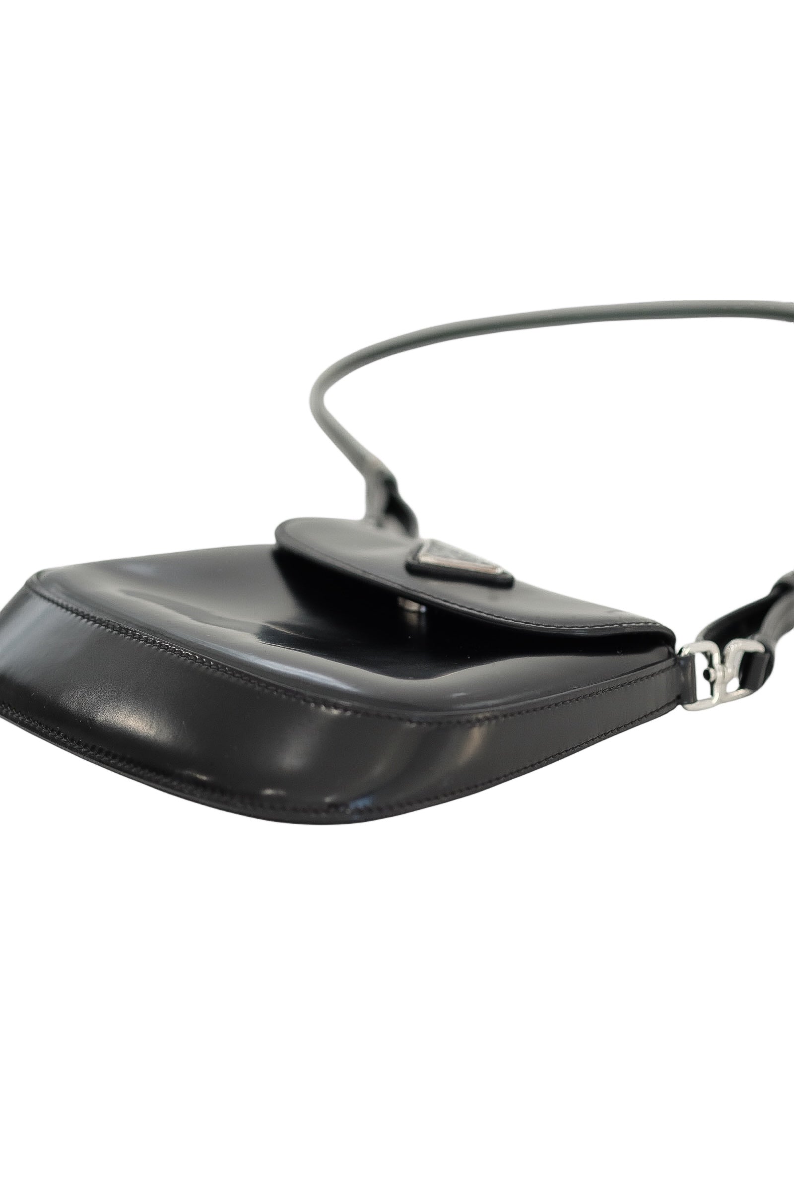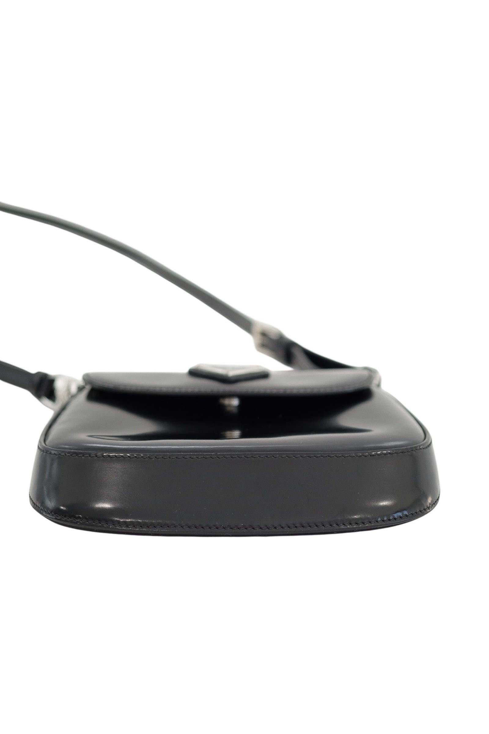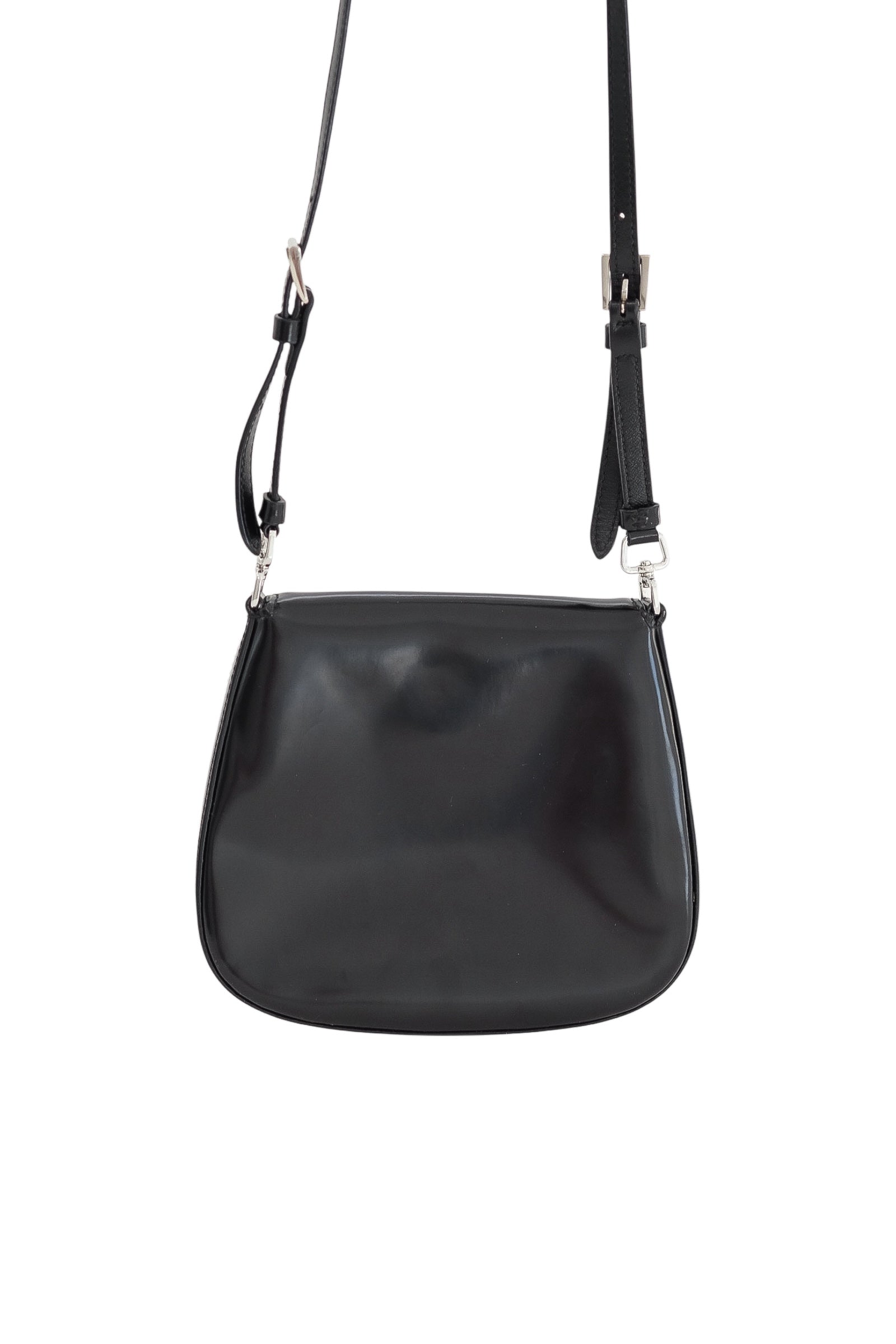 Editor Note: A sleek reflection of Prada’s minimalist codes, this Patent Leather Shoulder Bag offers both elegance and versatility. The high-shine black finish is complemented by the house’s iconic enamel triangle logo in silver, while the softly structured silhouette makes it an ideal everyday companion. Finished with an adjustable strap, it moves seamlessly from day to night with understated refinement.
