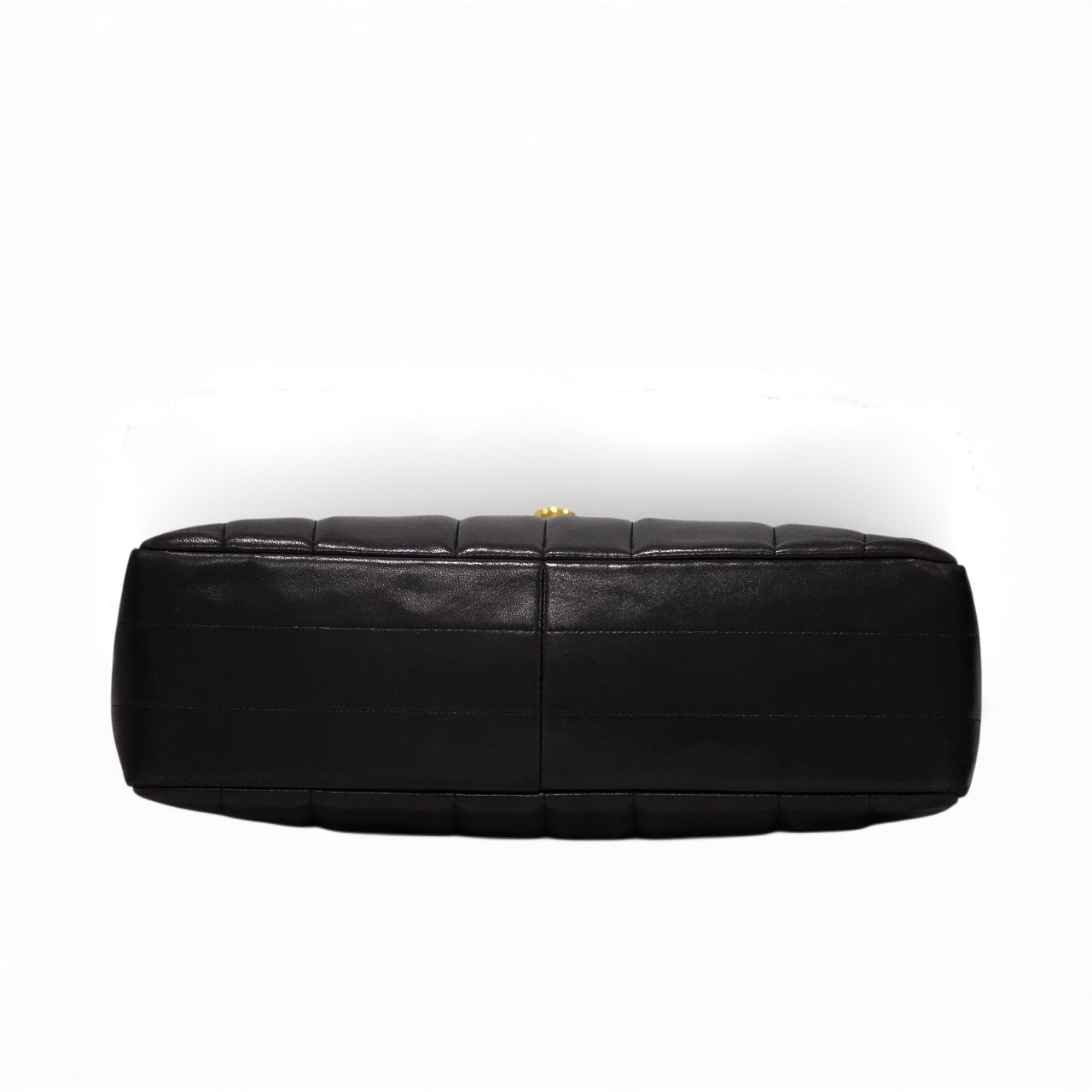 A rare gem from Chanel’s vintage archives, this Chanel Vintage Mademoiselle Vertical Quilted Flap Bag showcases the timeless elegance of the Maison’s craftsmanship. Expertly crafted from supple black lambskin leather, its vertical quilting enhances the structured silhouette and luxurious texture. The signature oversized CC turn-lock in 24K gold-plated hardware adds a striking touch of vintage glamour. With its classic chain strap and versatile design, it transitions effortlessly from daywear polish to evening sophistication.
