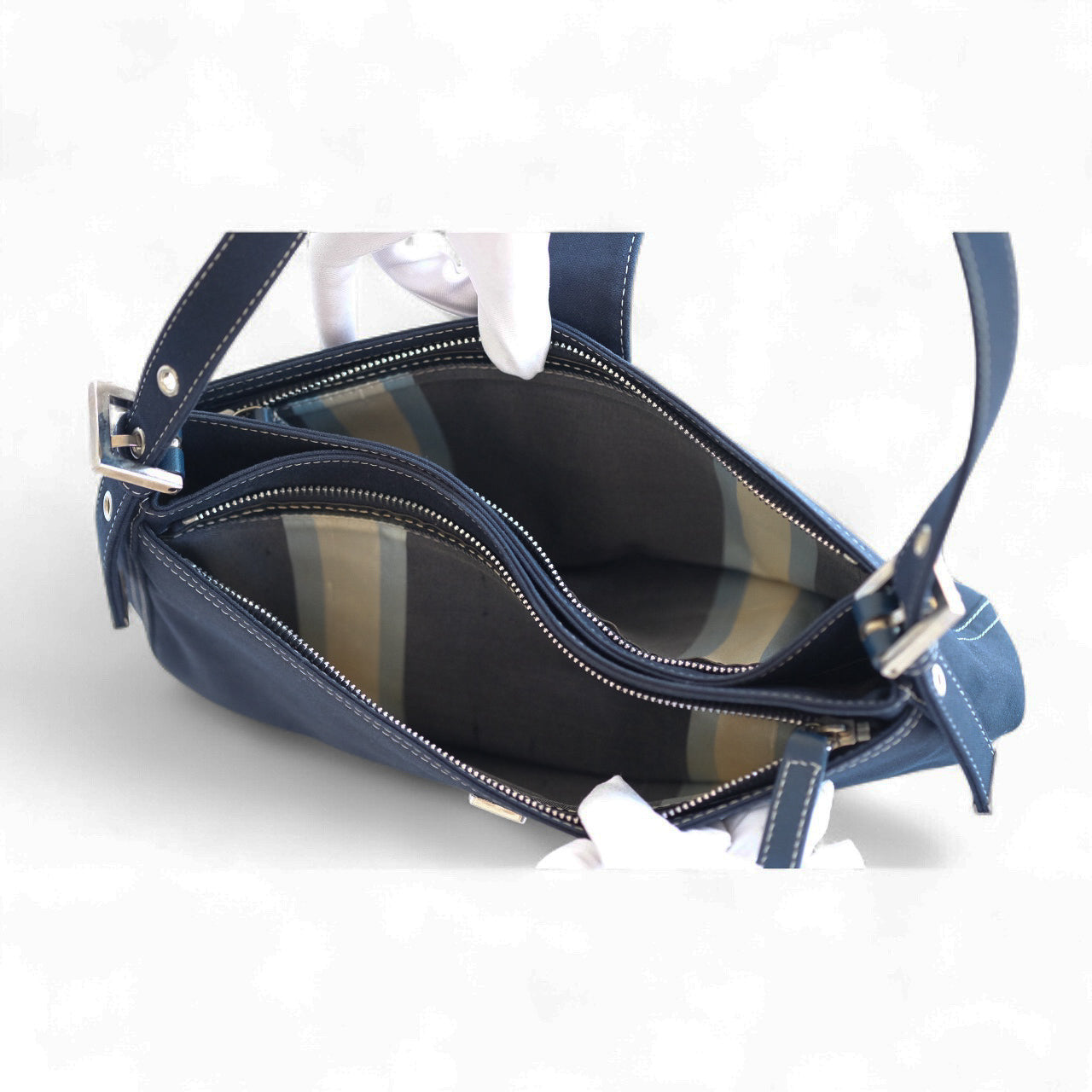 Editor’s Note: Understated yet distinctive, this Fendi Denim Navy Baguette Shoulder Bag combines minimal elegance with a touch of artistic detail. Crafted in smooth navy canvas with contrast white stitching, it’s accented by a signature Fendi logo buckle featuring an iridescent abalone-style inlay. Compact and versatile, this piece perfectly embodies Fendi’s modern sophistication — ideal for both day and evening wear.